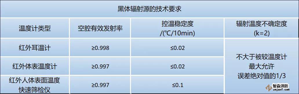 紅外額溫計(jì)和其他各種用于人體表面溫度快速篩檢的儀器則可以參照《測(cè)量人體溫度的紅外溫度計(jì)校準(zhǔn)規(guī)范》,其中對(duì)溫度源的技術(shù)要求為: